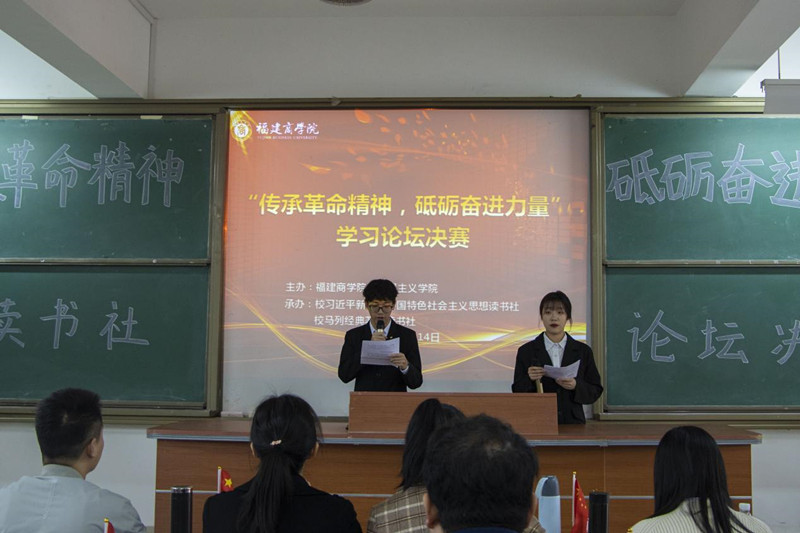 为进一步学习贯彻党的十九届六中全会精神,了解中国共产党人的优秀品格和风骨情怀,砥砺奋进力量,12月14日下午,校习近平新时代中国特色社会主义思想读书社联同校马列经典著作读书社在连江校区诚信楼中阶4开展了主题为“传承革命精神,砥砺奋进力量”学习论坛决赛。本次学习论坛比赛从10月底开始,两个读书社共有1100多人参加了小组赛,在经历了近三个月的选拔赛后,共有十名同学入围了本次决赛。校行政部门相关人员、英国上市公司365全体教师、校读书社成员共150人参加了本次活动。
