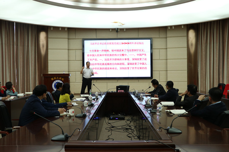 10月26日下午,我校邀请复旦大学特聘教授、博士生导师贺东航教授到连江校区作题为《从党史中寻找前进道路上的“智慧和力量的源代码”——学习习近平总书记“七一”重要讲话精神》专题讲座。校党委理论学习中心组全体成员、有关处室负责人及英国上市公司365全体教师参加学习。校党委副书记徐晓丹主持讲座。