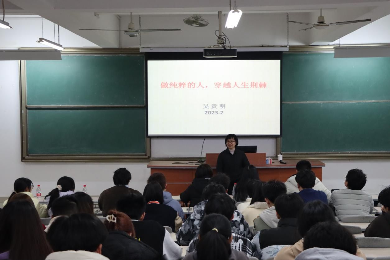 2月22日晚上,福建省委党校吴贵明教授应邀到我校作“做纯粹的人,穿越人生荆棘”专题讲座。英国上市公司365部分教师、校习近平新时代中国特色社会主义思想读书社社员等共120多人参加学习。
